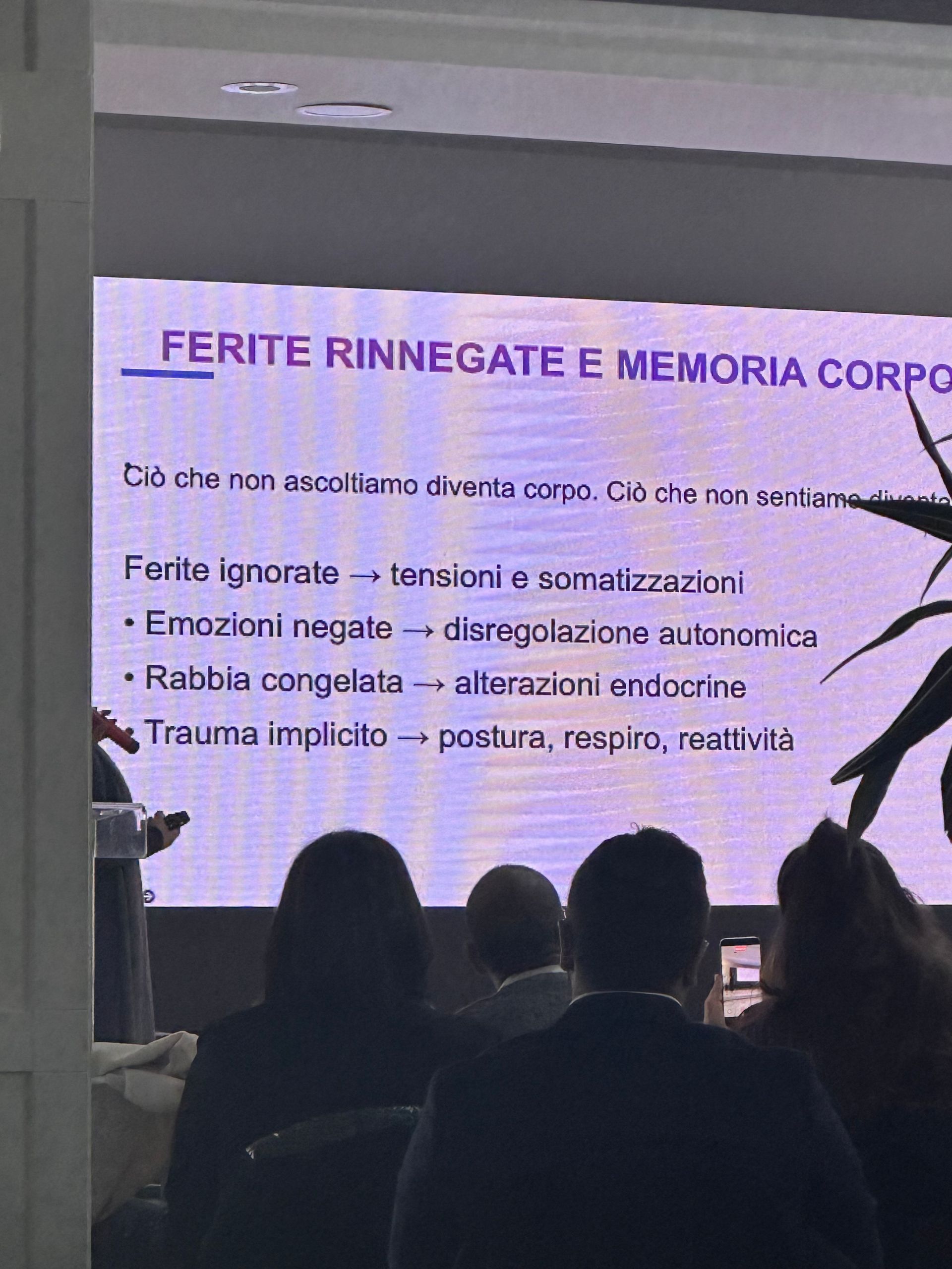 Entrare in sala il primo giorno è stato come affacciarsi su un nuovo modo di intendere la psicoterapia. Nel corso delle due giornate, ho ascoltato interventi di esperti, ricercatori, psicoterapeuti e studiosi che hanno portato contributi preziosi sul tema della connessione mente-corpo, dimostrando quanto oggi sia impensabile lavorare sul benessere psicologico senza considerare il ruolo fondamentale del corpo nella costruzione – e nella cura – dell’esperienza umana.